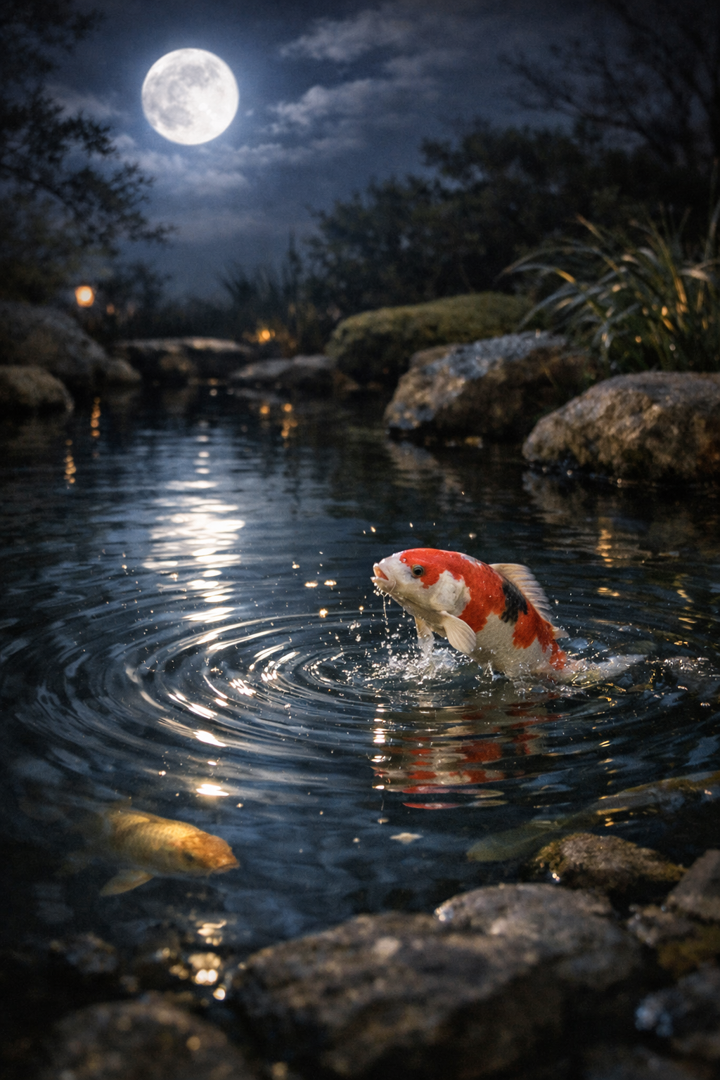 出会えたね 三月(みつき)の眠り 飯(めし)食ふて 月夜の波紋 鯉の雄たけび